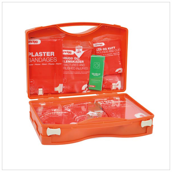 Førstehjelpskofferten skal være sentralt plassert og holdes komplett for maksimal beredskap. Egner seg bra på anleggsområder og i produksjonslokaler.
